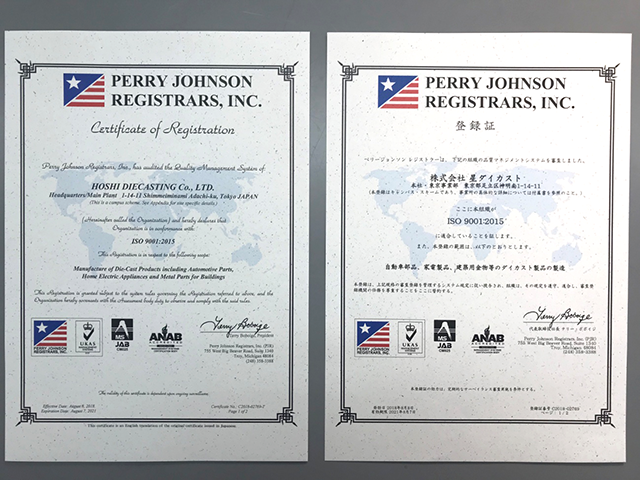 本社と埼玉営業部は、2018年8月に「ISO9001:2015」を取得いたしました。